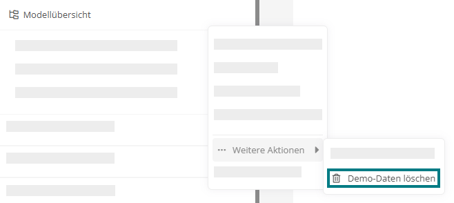 In der SystemAdministration können Sie alle Demo-Daten löschen. Öffnen Sie hierzu das Kontextmenü der Modellübersicht und klicken Sie auf Demo-Daten löschen.