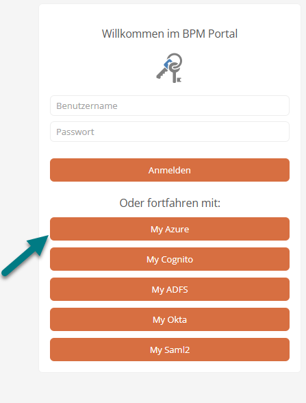 Die Authentifizierung in Aeneis über Azure ist nun eingerichtet. Benutzer können sich per Klick auf die Schaltfläche mit dem konfigurierten Namen über die Authentifizierung im Portal anmelden. Die gewählte Methode wird für 30 Tage gespeichert, sodass eine erneute Auswahl erst danach erforderlich ist.