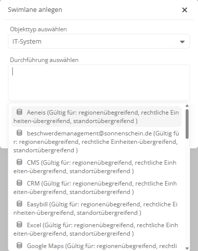Hinweis: Die verwendeten IT-Systeme eines Prozesses können über Attribut-Lanes im Diagramm angezeigt werden.