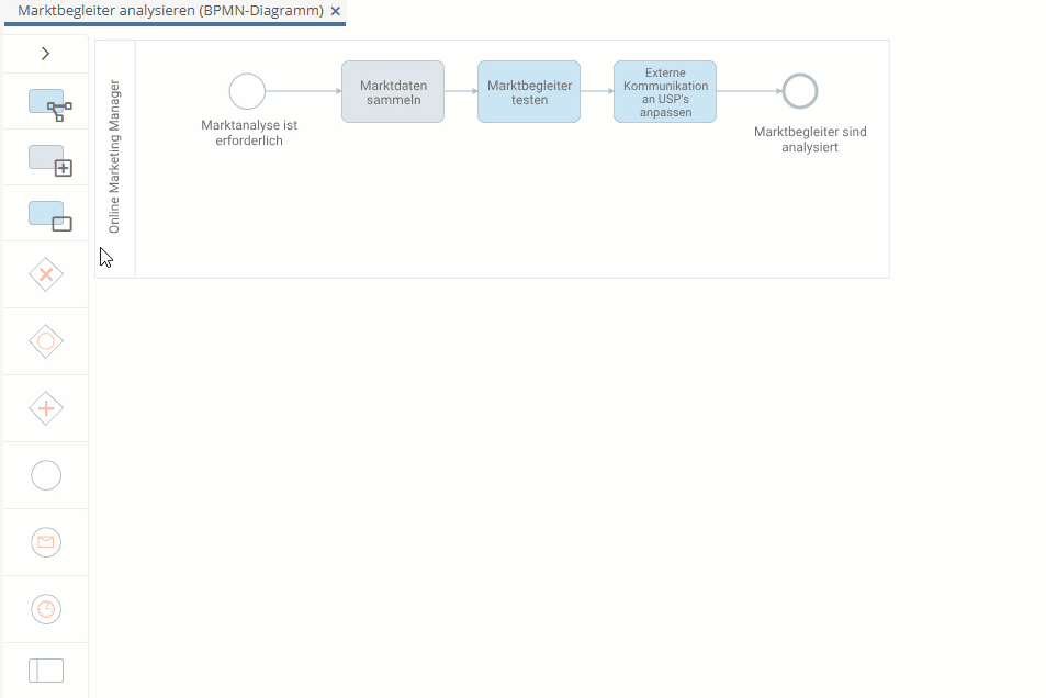 Um Ihre Diagramme schnell und einfach zu modellieren, ziehen Sie das jeweilige Element aus der Zeichenpalette und legen es in der Zeichenfläche an der gewünschten Stelle ab.