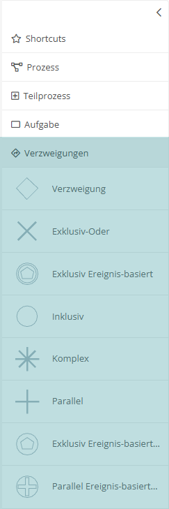 Im WebModeller finden Sie direkt neben der Zeichenfläche von BPMN-Diagrammen und Freihanddiagrammen eine Zeichenpalette, wo Sie alle Formen und Shapes finden, die Sie für die grafische Modellierung verwenden können.